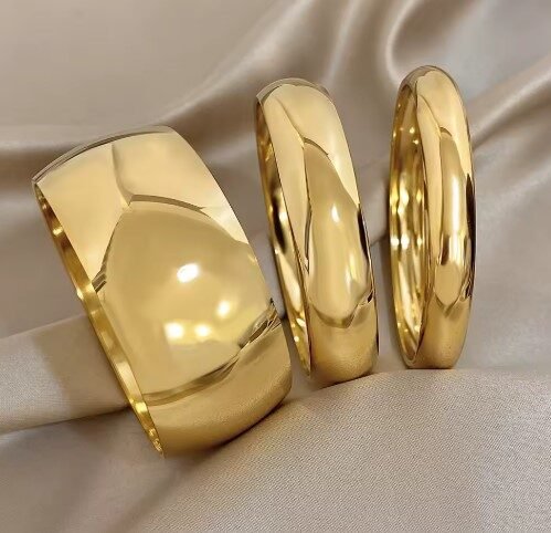 Bracelet en acier inoxydable plaqué ou brillant pour femmes et hommes, taille disponible ; 10mm 15mm 30mm, manchette épaisse et lisse, bijoux imperméables