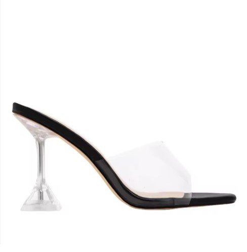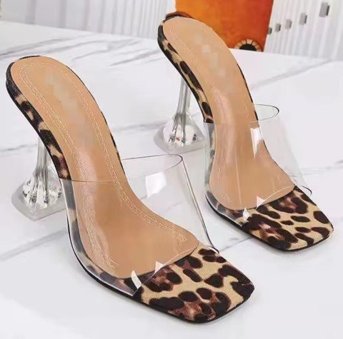 Sandales pour femmes avec talons hauts bande transparente bout carré vêtements d’extérieur chaussures pour femmes transfrontalières chaussures en cristal transparent.