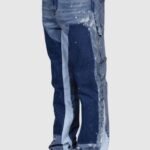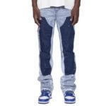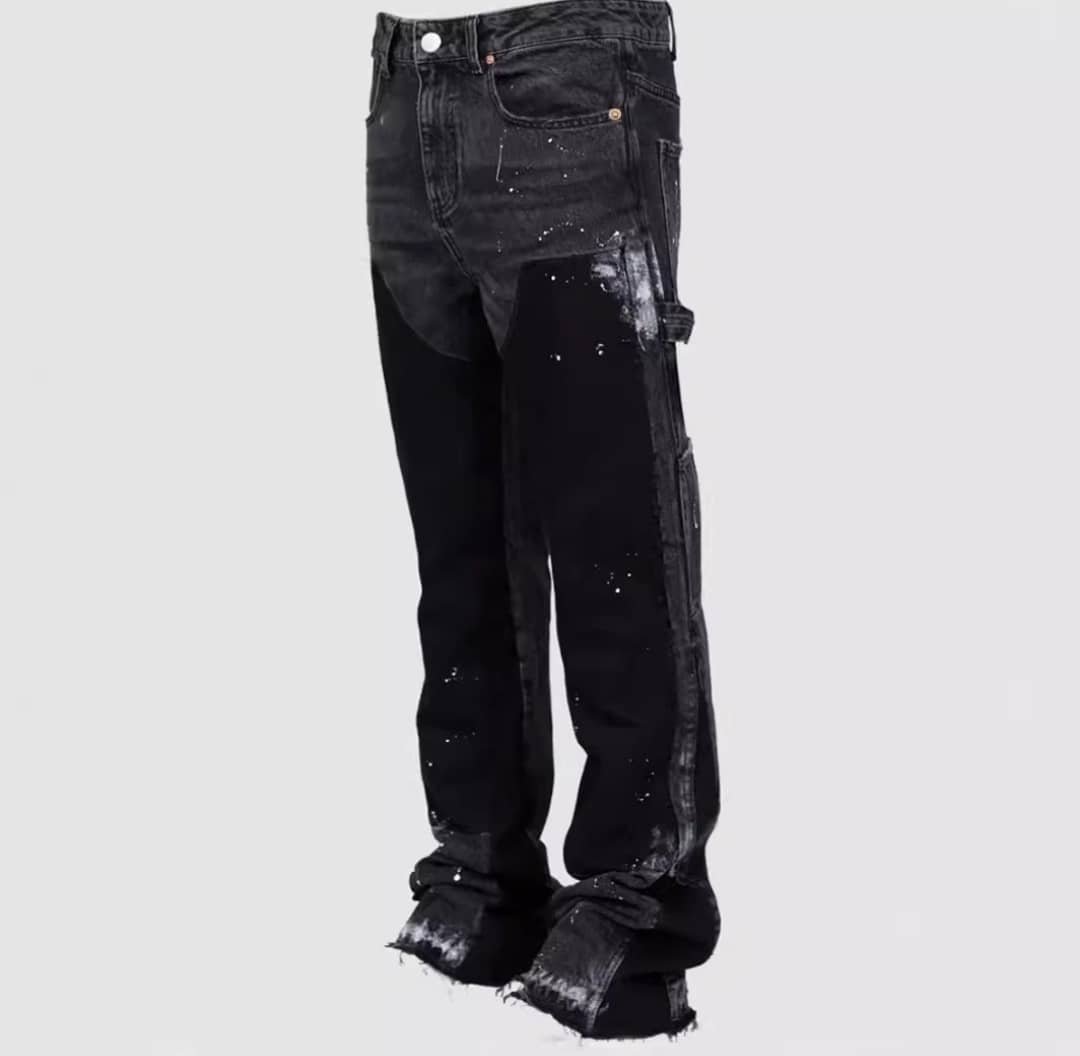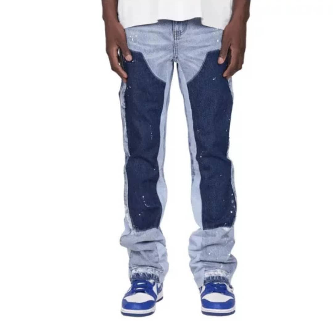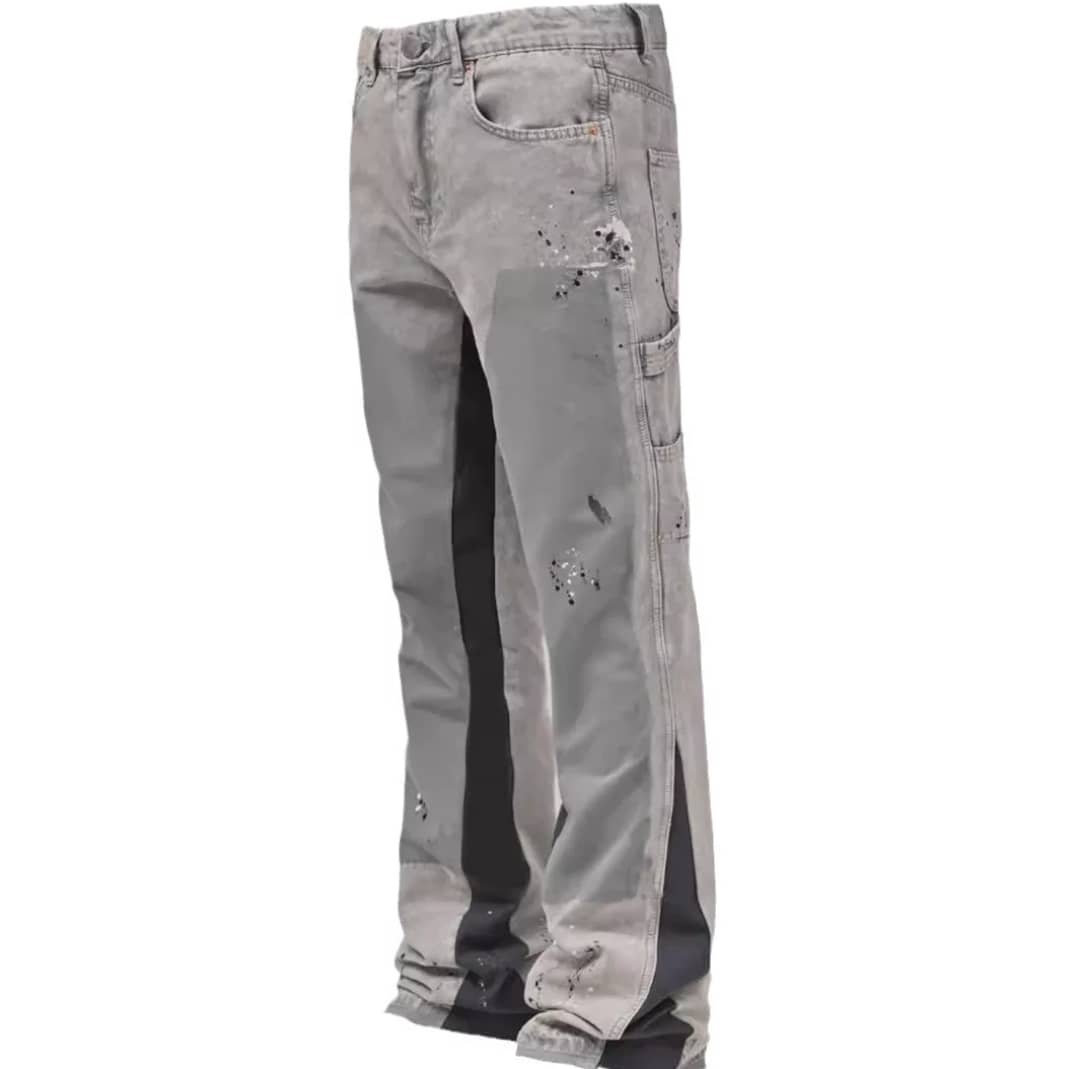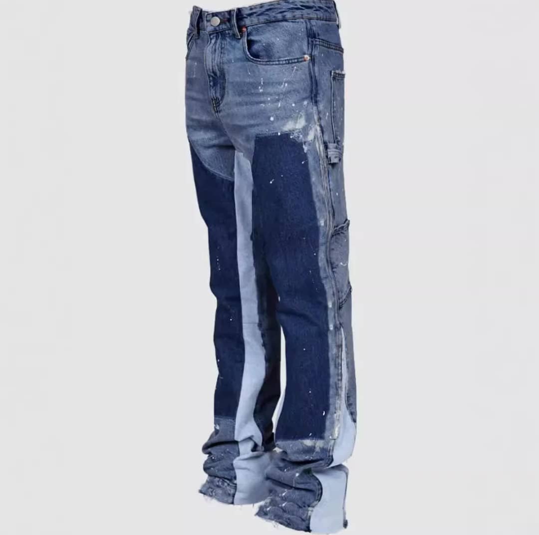 Pantalons de travail en jean pour hommes, vêtements de travail à la mode européenne et américaine, pantalons évasés en canapés en Denim Patchwork élastique