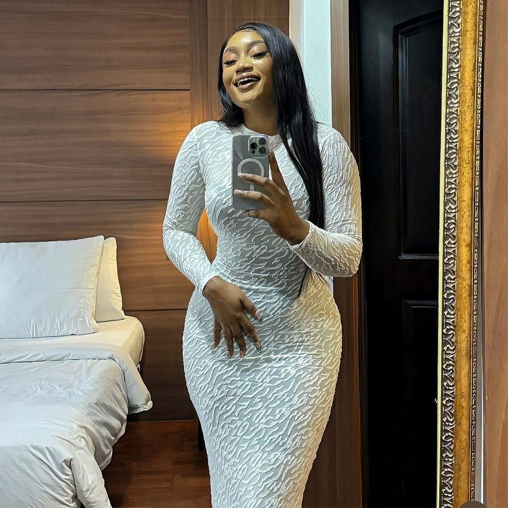 Robe ajustée en dentelle noire, manches longues, coupe glamour. Parfaite pour les soirées, rendez‑vous et événements spéciaux.