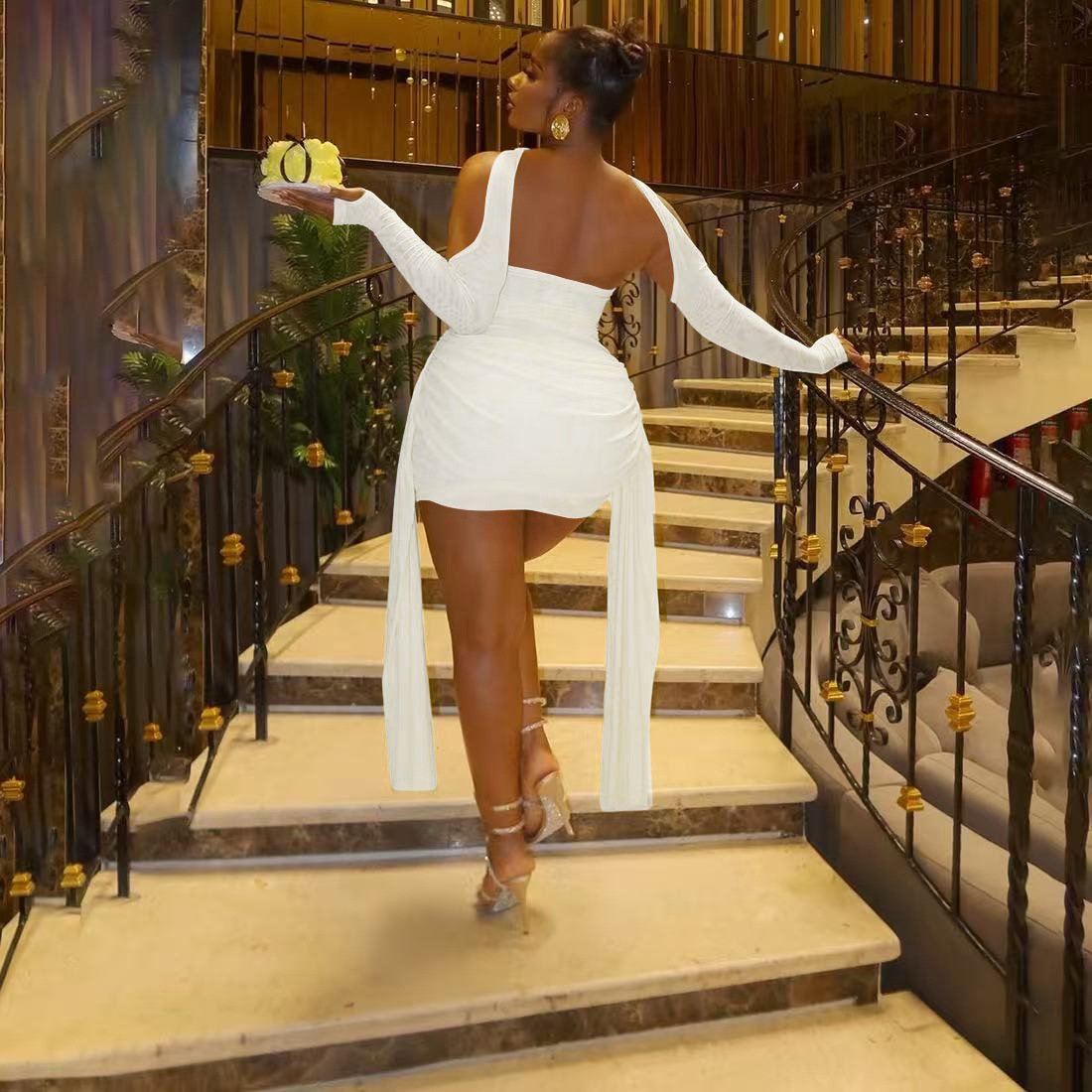 Elegant Sing Shoulder Pearls Rhinestone Maxi Dress Long One-Piece Dress Gown Luxury Sequins Woman Party Dress