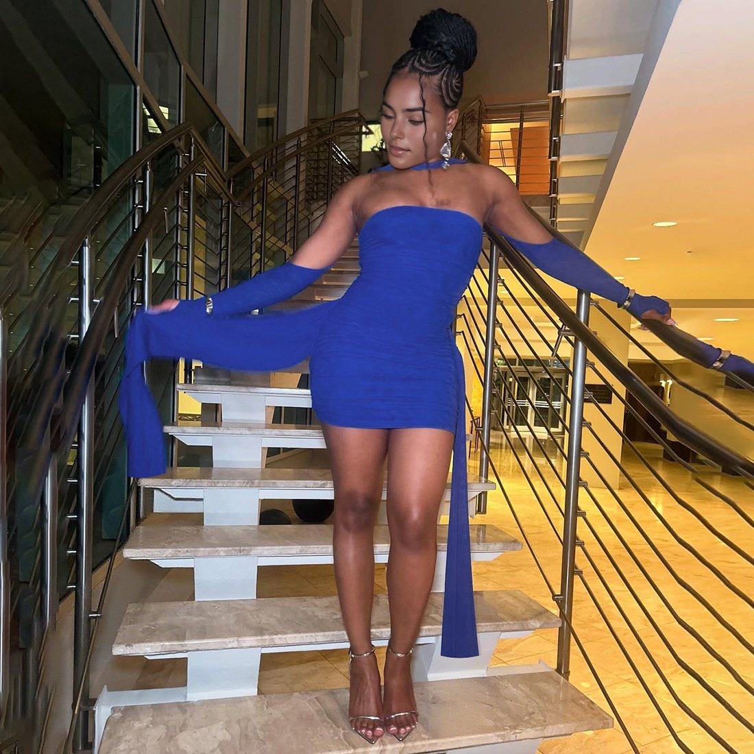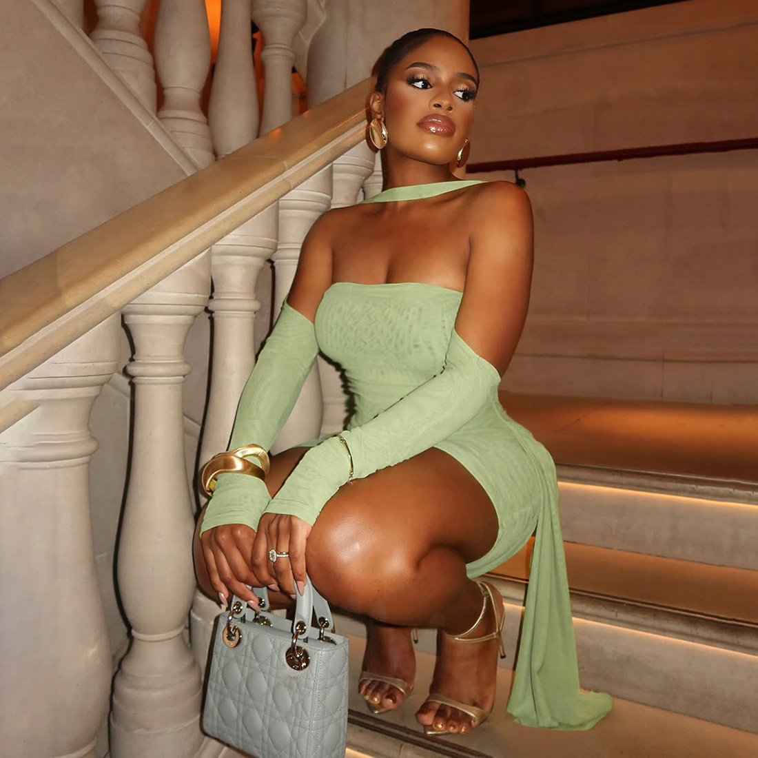 Robe longue ajustée, manches longues, coupe glamour. Parfaite pour les soirées, rendez‑vous et événements spéciaux.
