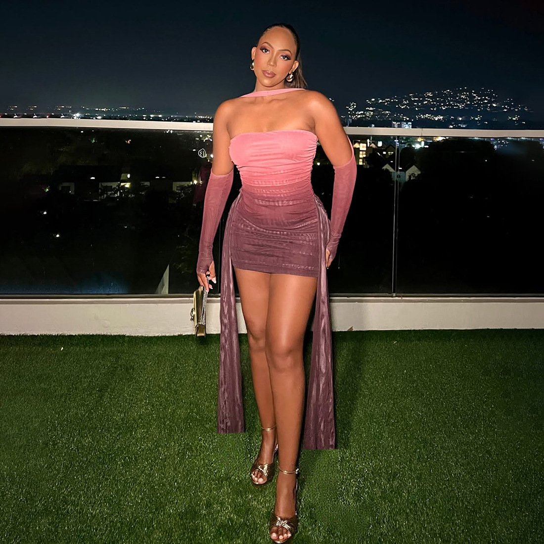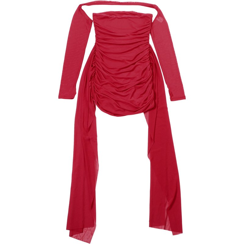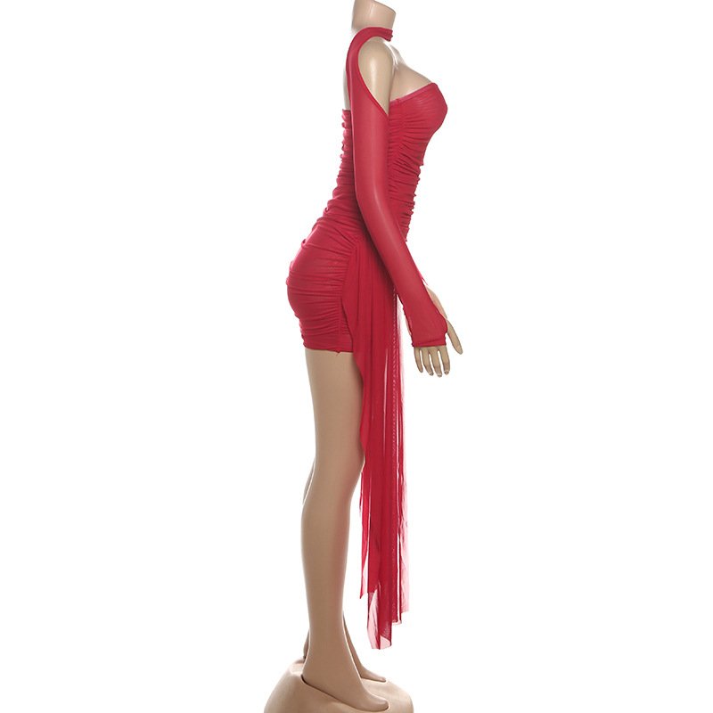 Robe multicolore en voile transparent, manches longues, coupe glamour. Parfait pour les soirées, rendez-vous et événements spéciaux.