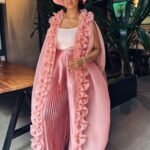 Robe longue plissée avec cape volumineuse et détails raffinés.Une pièce artistique et élégante, idéale pour soirées, événements et mode premium.
