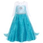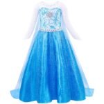 Robe princesse Elsa inspirée de la reine des neiges pour filles, Cosplay princesse en dentelle respirante, bleu clair, manches longues, robe Disney + accessoires.