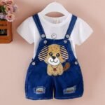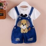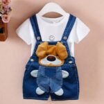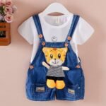 Eté mode bébé filles vêtements garçons imprimé pantalon décontracté dessin animé jeans bébé Denim court salopette pantalon.
