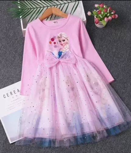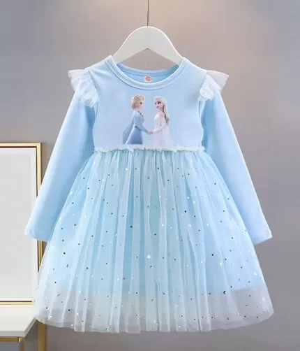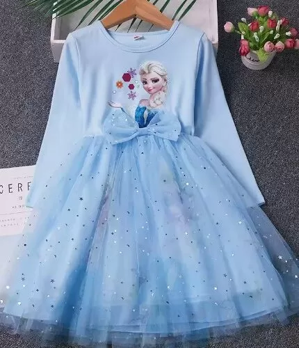 Robe de princesse Elsa Disney pour petites filles, vêtements de printemps et d’automne à manches longues pour enfants de 2 à 8 ans, nouvelle collection 2025