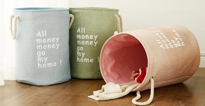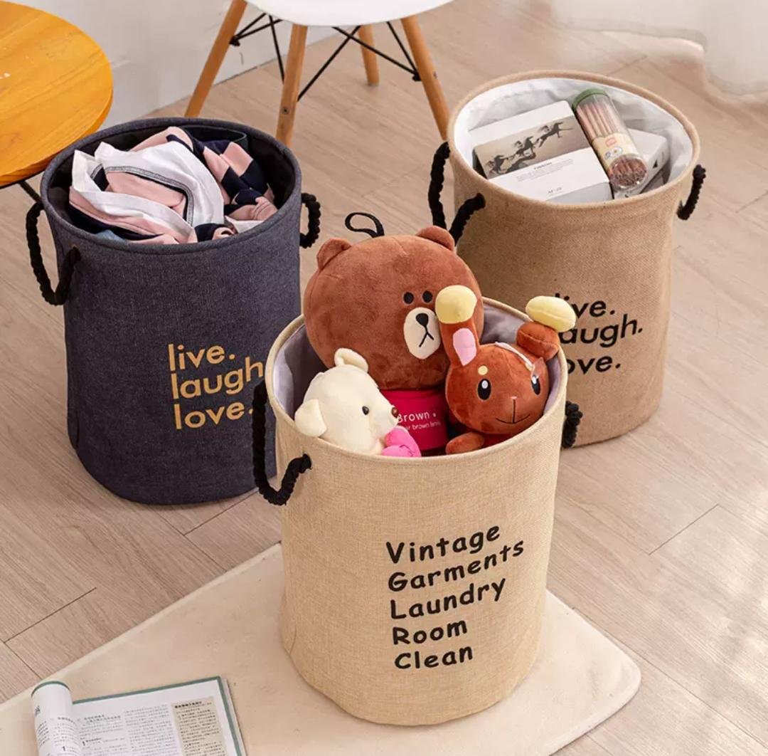 Panier à linge en tissu, grande capacité avec poignées, pratique et décoratif pour la maison.