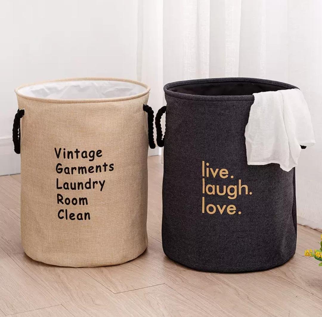 Panier à linge pliable en tissu, grande capacité avec poignées, pratique et décoratif pour la maison.