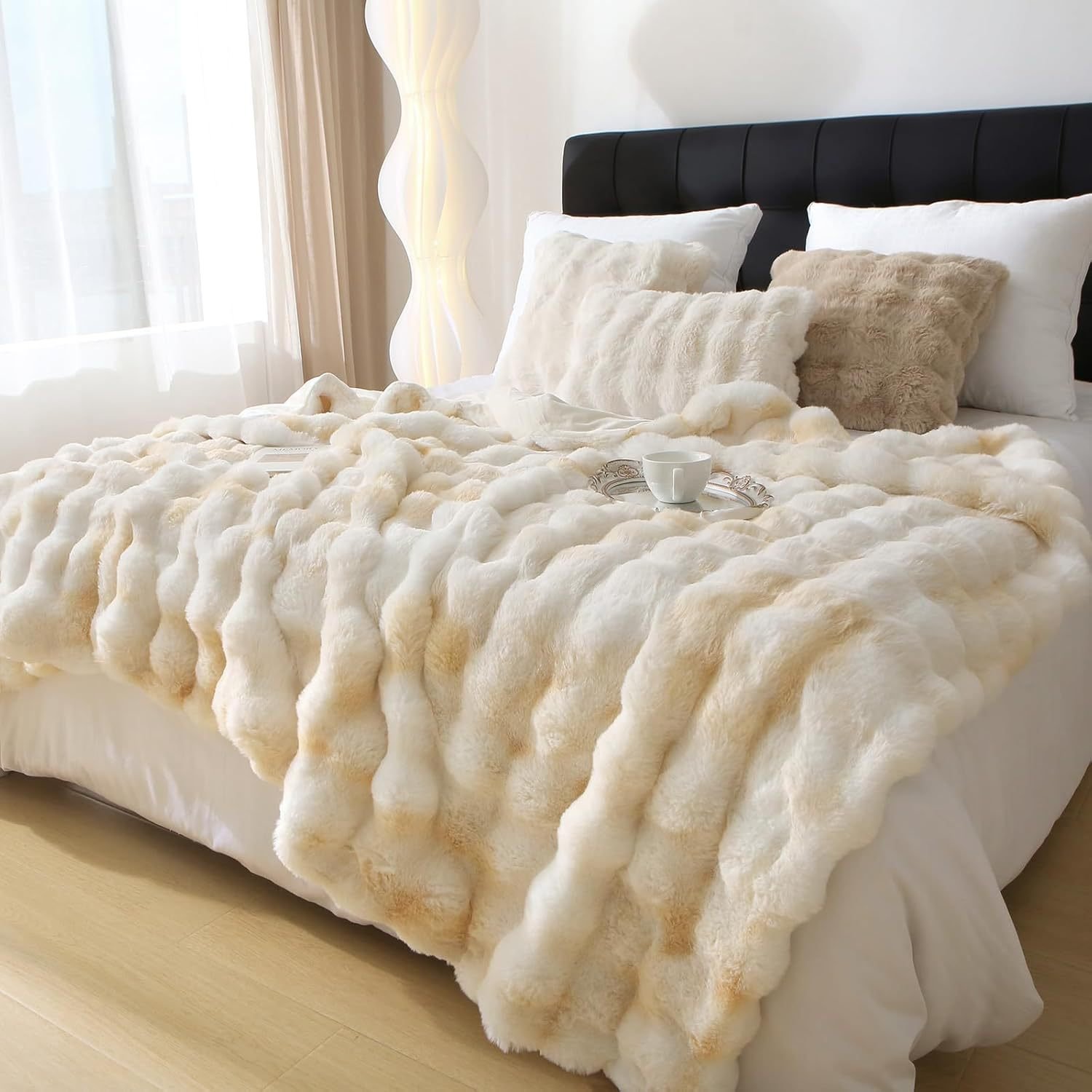 Plaid en fausse fourrure grise, doux et élégant, parfait pour réchauffer et sublimer ton intérieur.